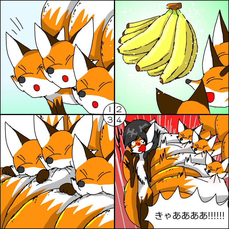 美味しそうなバナナを見つけた3匹の子ぎつねたち!