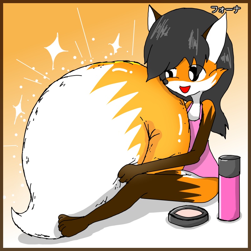 フォーナはしっぽをきれいに整え、化粧をしています。