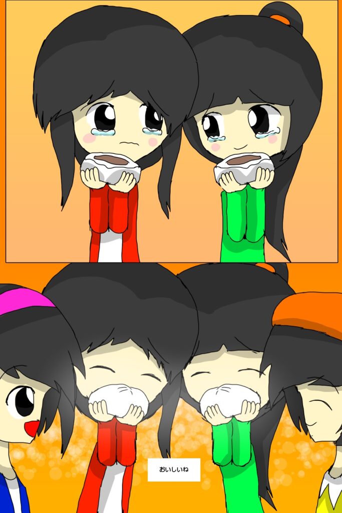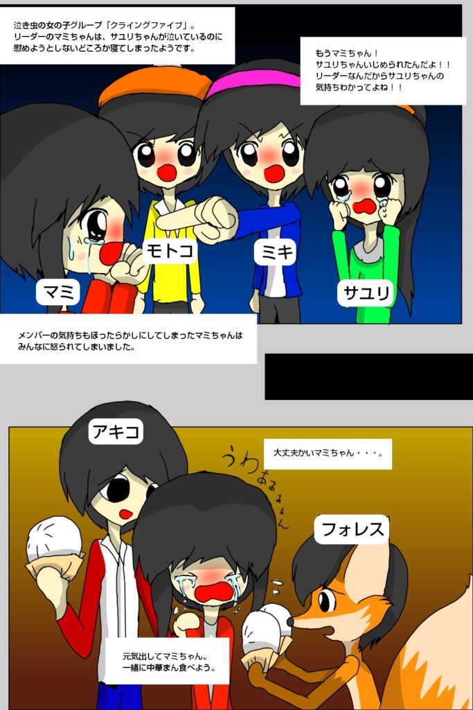 泣き虫の女の子グループ「クライングファイブ」が、メンバー間でギクシャクしちゃいますが、中華まんをはんぶんこして一緒に食べて仲直りするという、ぽかぽかするお話しです。