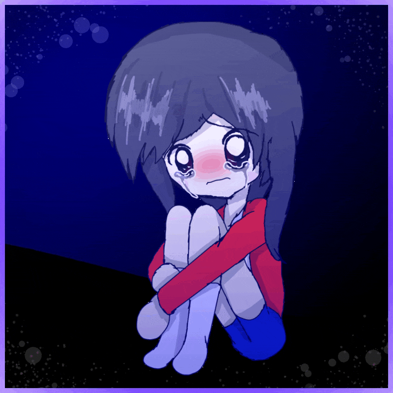 いじめられたり、怒られたりして、震えながら泣いている様子です。