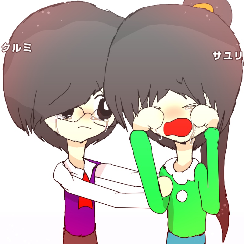 泣いているサユリちゃんと慰めるクルミちゃん